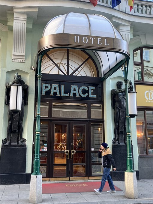 Because, if you look across the road*, you can see the Art Nouveau Palace Hotel, which has been beautifully done up (with hints of kitsch, but I quite like hints of kitsch). So maybe there’s hope for Millesimovský.