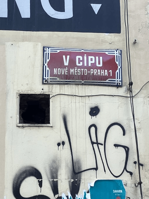 A cíp is a tip or a corner. And, as this is basically an extension of Panská (https://whatsinapraguestreetname.com/2024/09/23/prague-1-day-139-panska/) which doesn’t lead anywhere, this seems quite apt.