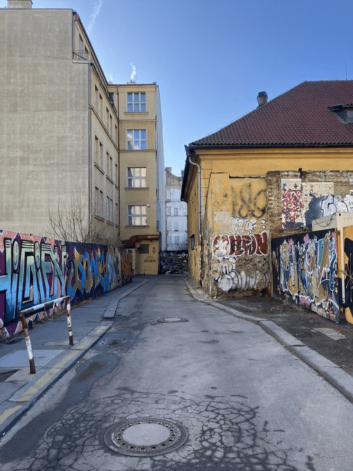 V Cípu has to be a contender for ‘least attractive street in Prague 1’. Even the houses refuse to look out onto it.