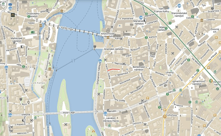This is one of Prague’s shorter streets – about 40 metres – and is really more of a courtyard than a street.