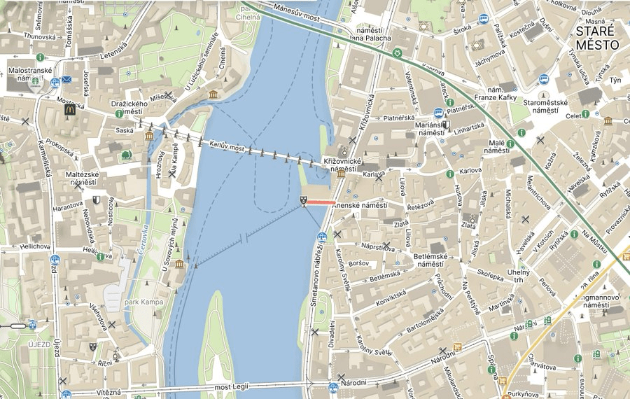 In 1887, it was renamed Novotného lávka in honour of Karel Novotný (1827-1900), a miller who had arranged for an iron footbridge on the southern side of the ‘street’.