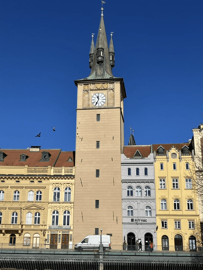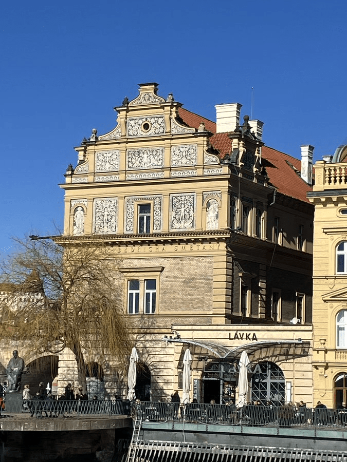 Number 1 – formerly the waterworks building – was modified in Neo-Renaissance style in 1887. Since 1936, it’s been the home of the Bedřich Smetana Museum (see https://whatsinapraguestreetname.com/2024/09/30/prague-1-day-156-smetanovo-nabrezi-smetana-embankment/ for a primer).