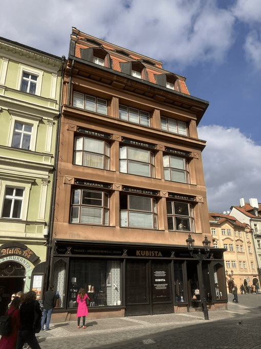 Built in 1912 on the site of a Baroque house with the same name, it’s a Cubist marvel (this is the building it replaced).