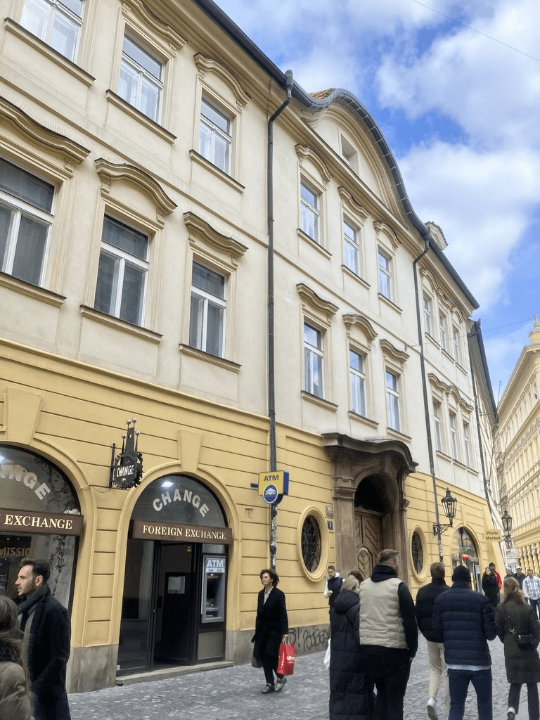Number 25, U Čtyř sloupů (The Four Columns), was purchased by an Italian merchant, Bernard Pompeius Bolzano, in 1786. His famous son would spend much of this life here (https://whatsinapraguestreetname.com/2024/09/19/prague-1-day-133-bolzanova/).