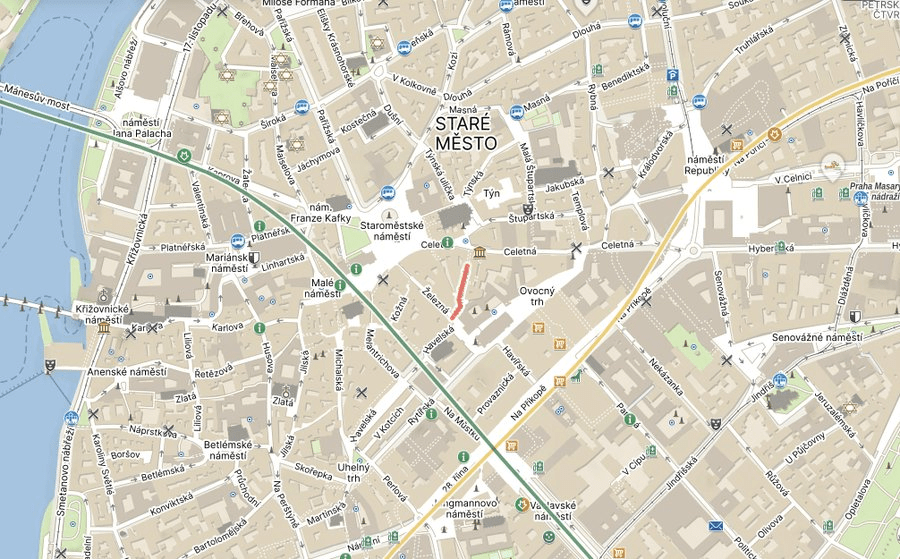 Indeed, the street was known as Za Karolinem until 1800. But back in the Middle Ages, it was called Pleierova, after Oldřich Pleier, the owner of number 9 (which, in its current form, is called U Černého slunce, or the Black Sun, and, yes, looks better on Celetná).