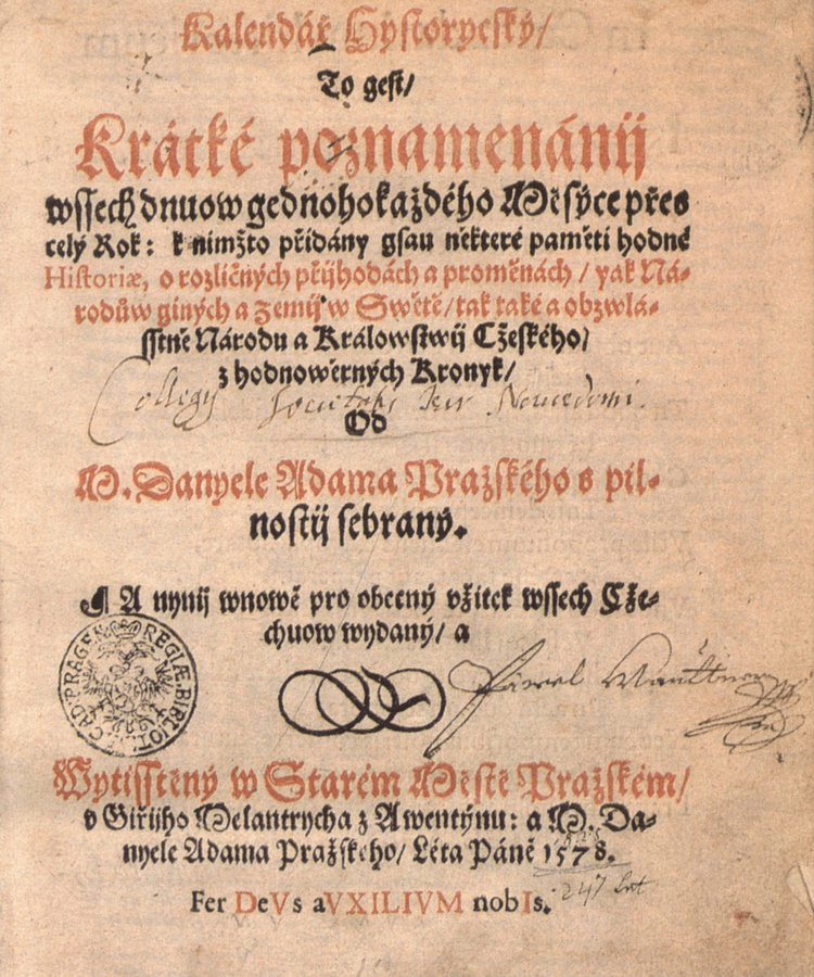 In 1578, he published Kalendář historický, which went through the days of the year and described the historical events that happened on them (i.e. this would probably have been my favourite book ever if I’d been around then).