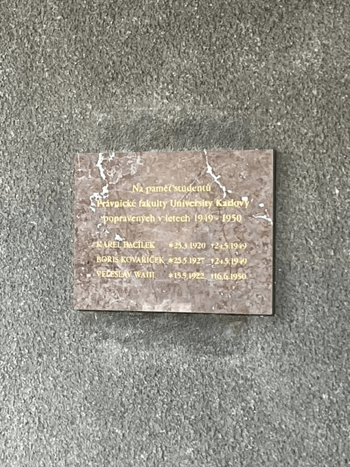 There are also plaques commemorating those who died here during the Prague Uprising in May 1945, and those students executed by the Communists in 1949 / 1950.