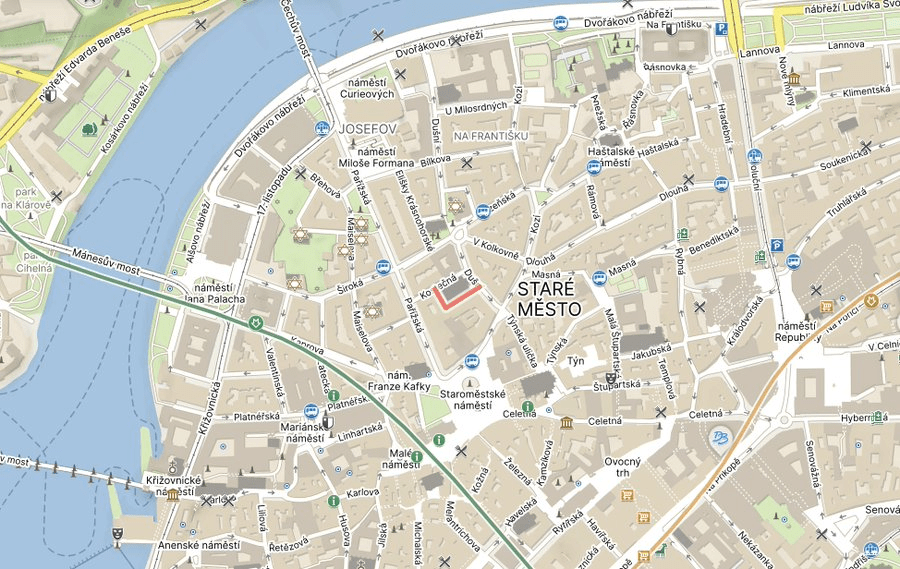 Also of note on Salvátorská is the Art Nouveau Štencův dům, built between 1909 and 1911. It housed what was apparently the most modern printing house in Austria-Hungary (albeit briefly, if it was only completed in 1911).