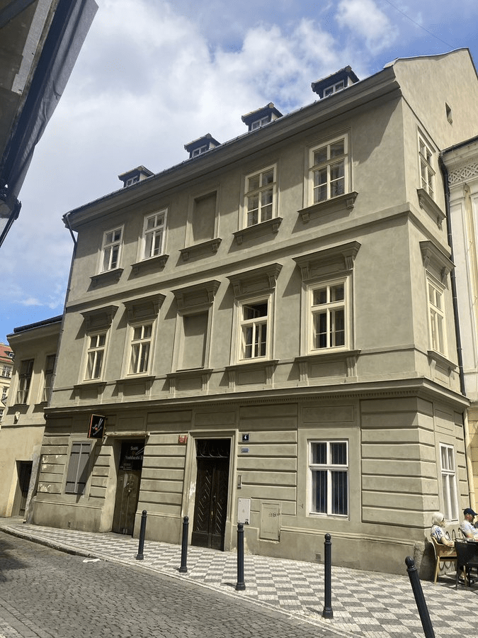 The first one is that the street is named after number 4, U Modrého rámce (The Blue Frame). It’s pictured, and, at least in 2024, not noticeably blue.