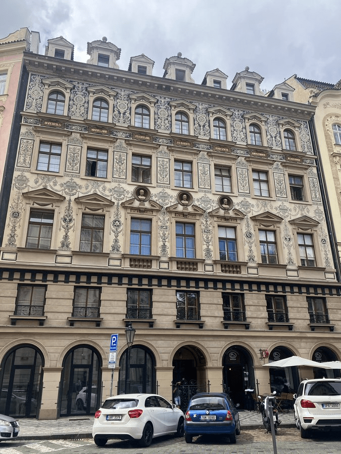 Zoom in, and you’ll see busts commemorating Petr Parléř, Matěj Rejsek and Benedikt Rejt, three of Prague’s most important architects.