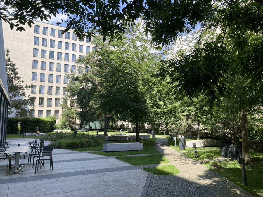 Na Florenci also features this quite nice park, located inside one of the business complexes; its shade and peacefulness (on a non-working day) are quite appreciated in the summer temperatures.