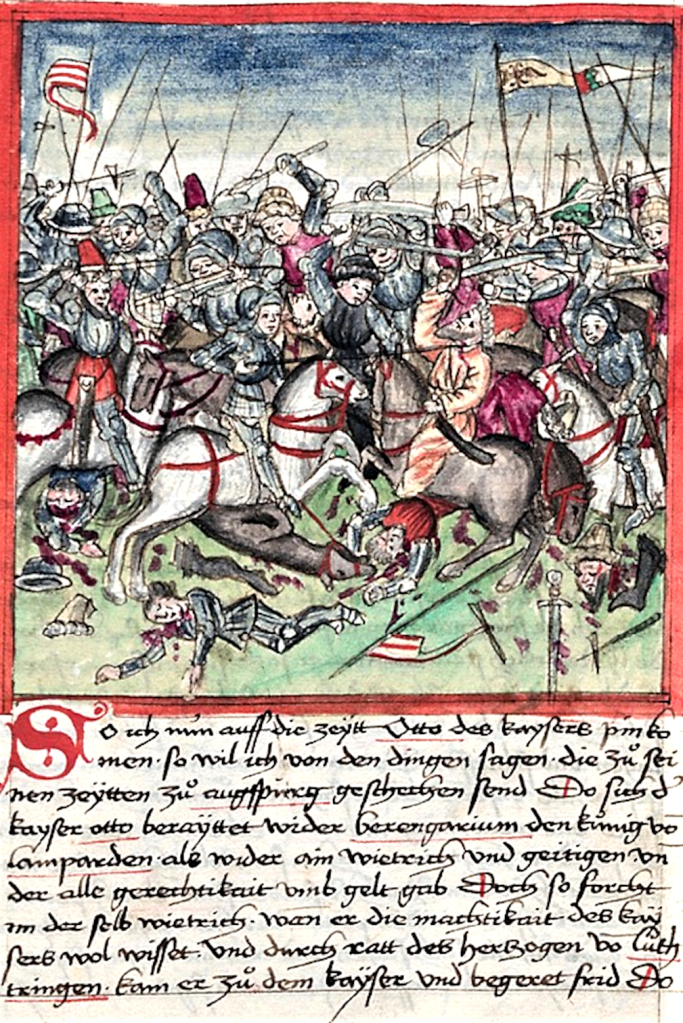 Otto and Boleslav joined forces against the Hungarian threat, and, in August 955, crushed the Hungarian forces at the Battle of Lechfeld (near Augsburg), putting an end to the Hungarians’ raiding era.