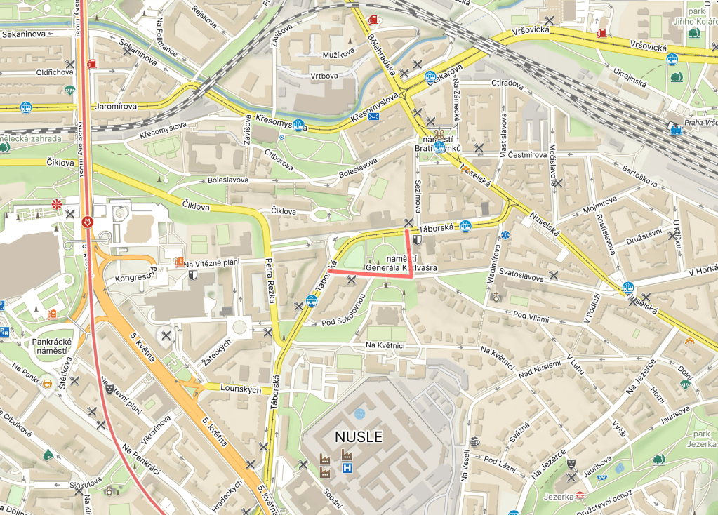 The square is also the location of this quite pleasing park, Jiráskovy sady (name explained on https://whatsinapraguestreetname.com/2024/09/01/prague-2-day-154-jiraskovo-namesti/).