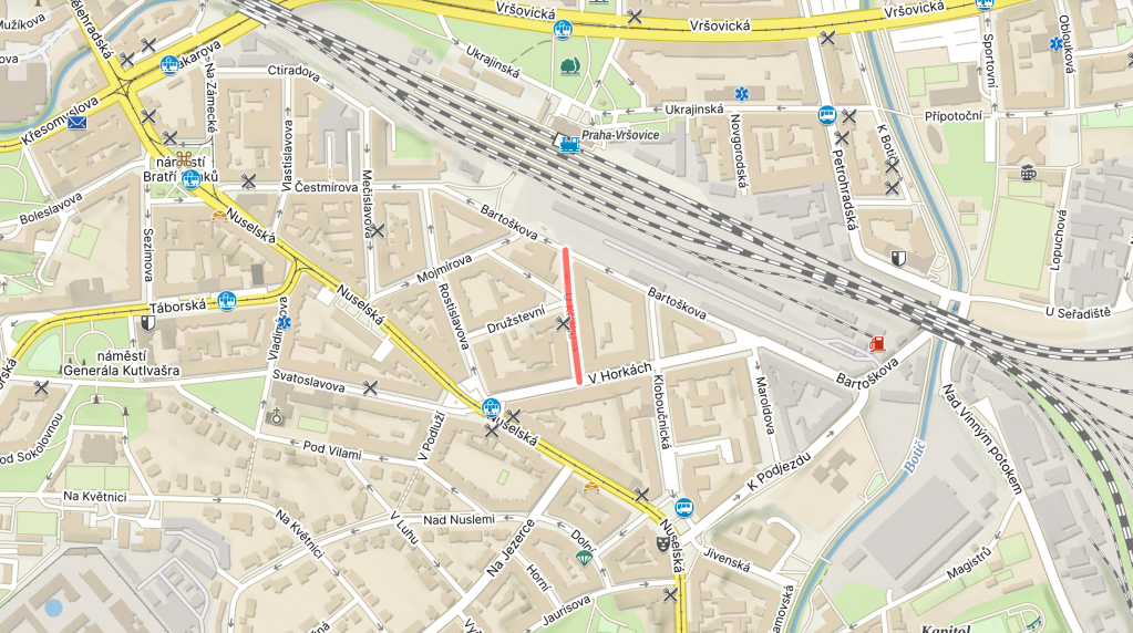 A ‘křížek’ is a small cross (a regular-sized cross is a ‘kříž’), and this was once the name of… something round here, probably involving the Holy Cross.