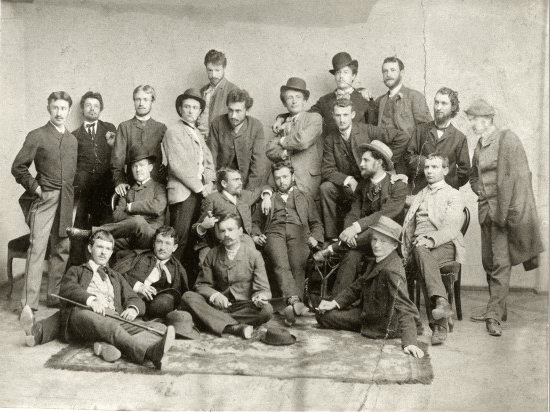 At the age of sixteen, he was accepted into Prague’s Academy of Fine Arts, but after a year, he continued his studies at the equivalent institution in Munich, where he produced paintings of everyday life and befriended fellow countrymen such as Alfons Mucha (they’re both in this photo).