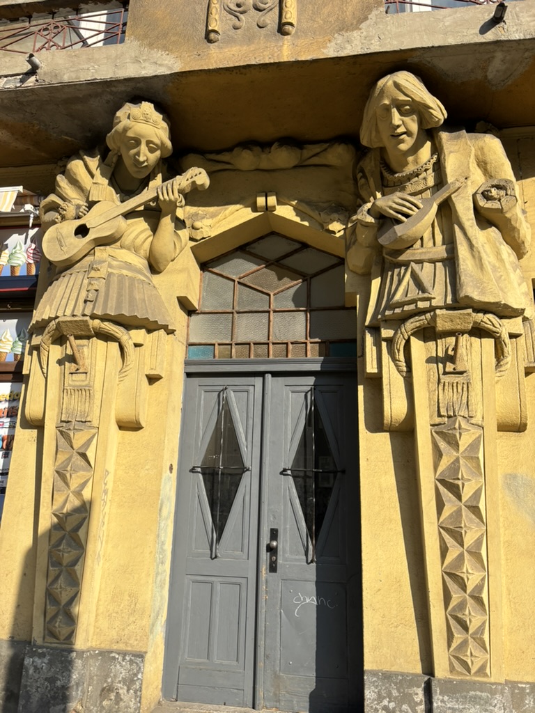 Its highlight is the two musicians – a guitarist and a lutist – surrounding its front door.