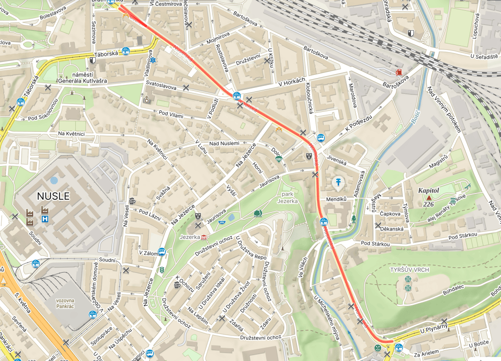 Until 1892, the part of Nuselská that was in Nusle was called Michelská silnice, as it was the main road that led to the nearby district of Michle. Meanwhile, the part of Nusleská that was in Michle was called… Nuselská silnice, for equal and opposite reasons.