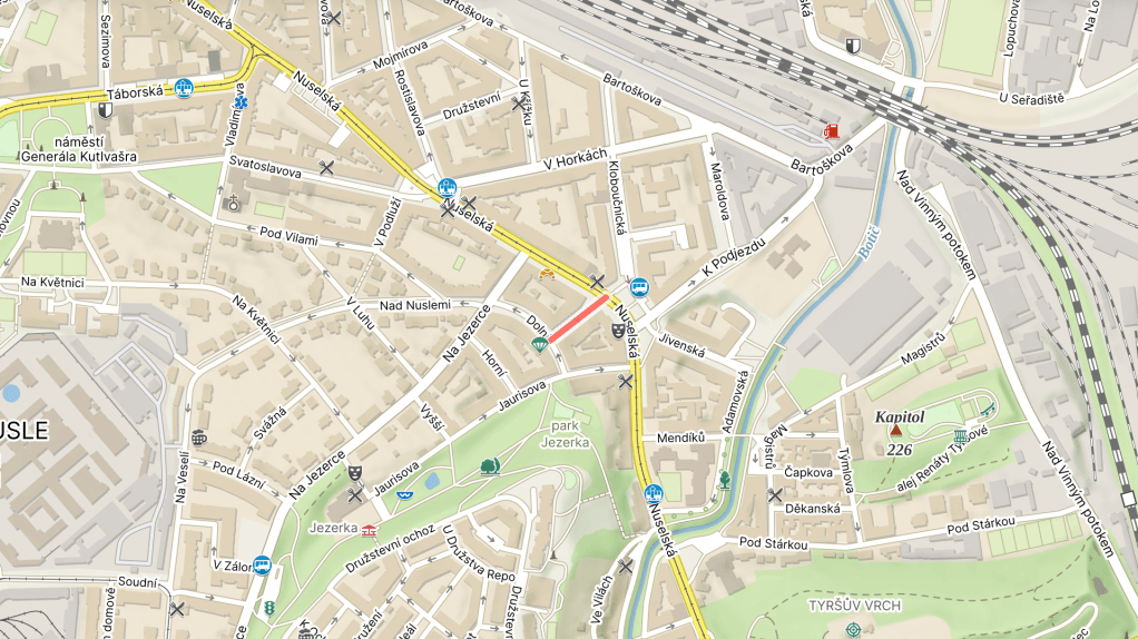 It translates as ‘under the spring’, and the spring in question is called Jezerka, as is the park that you can see in the map above.