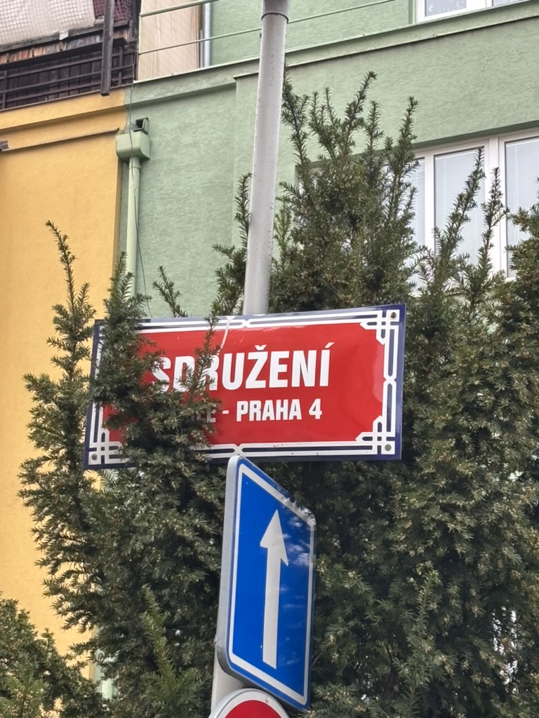 A ‘sdružení’ is an association, a group, or a club. And the name of the street commemorates the cooperative association that was involved in its construction.