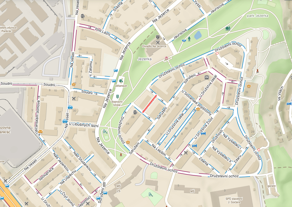 Such is the importance of The Ochoz that the two addresses on Rovnoběžná, located between Družstevní ochoz 30 and 36, are numbered 32 and 34.