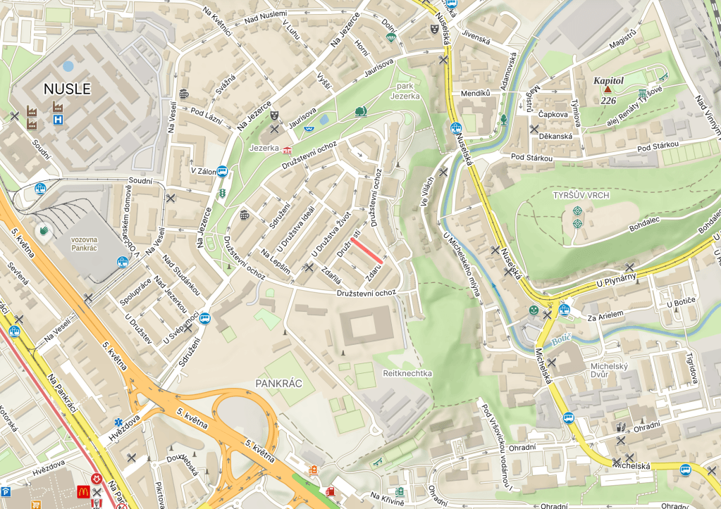 By 1947, this street didn’t have a name yet. Not feeling terribly creative, the Central National Committee of the City of Prague declared that, as the street was the result of the hard work done by the builders, the street should be called what literally translates as ‘on the result’.
