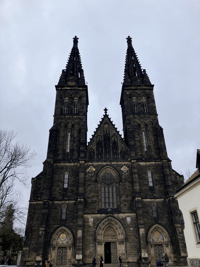The church being that of St. Peter and St. Paul, which has held the status of ‘basilica’ since 2003 (more on https://whatsinapraguestreetname.com/2024/08/24/prague-2-day-94-k-rotunde/).