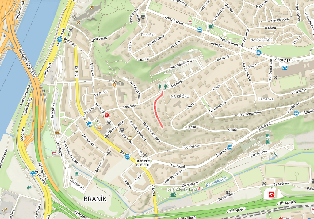 Quick one today: we recently spoke about the somewhat distinctive building called Na Křížku, because there’s a street called ‘Nad Křížkem’ which is above it: https://whatsinapraguestreetname.com/2025/11/04/prague-4-day-219-nad-krizkem/.