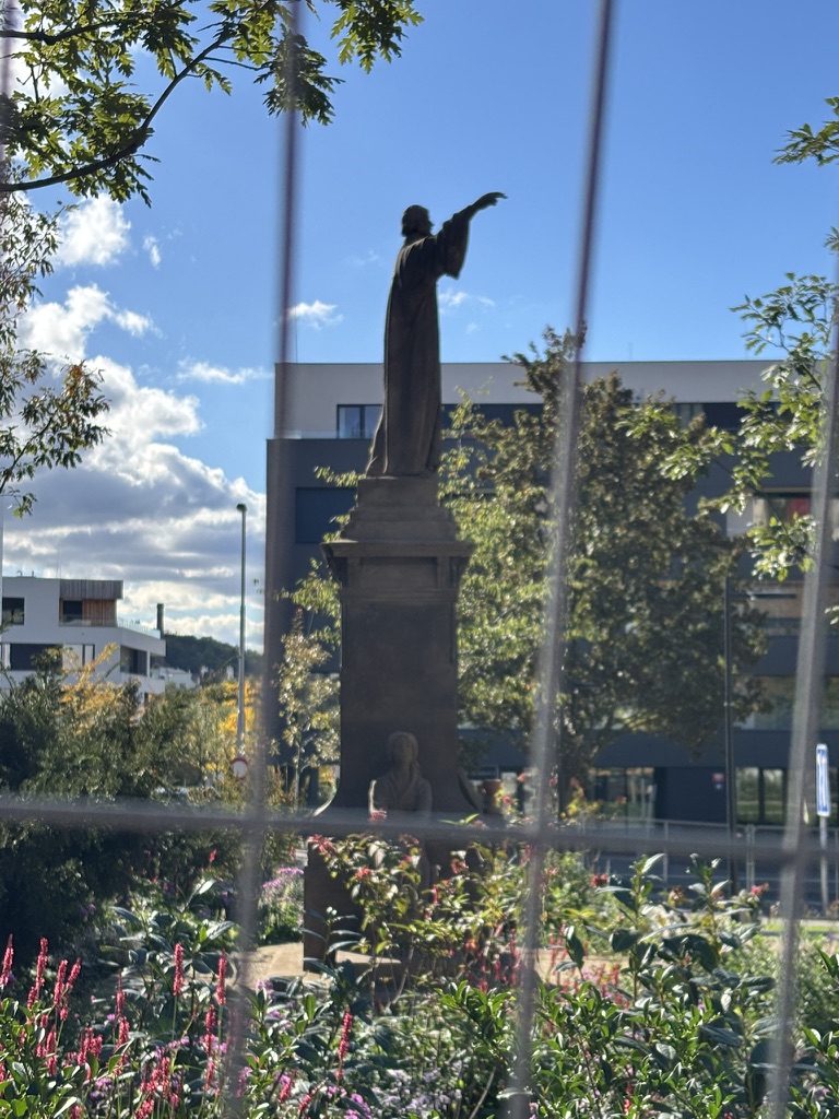 Branické náměstí is pretty small, and currently feels even smaller, because it’s fenced off (pics of Jan Hus behind bars below).