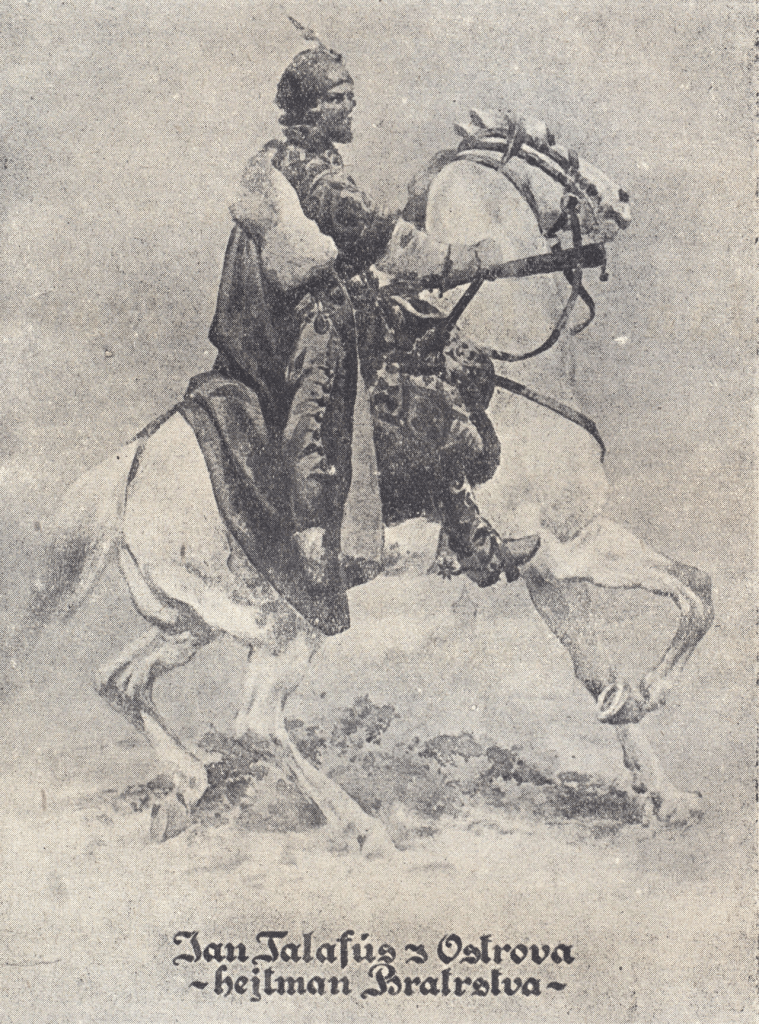 Talafús is last mentioned in writing in 1475. Well, that’s the last non-fiction reference during his lifetime: the street is named after him because of the Alois Jirásek trilogy Bratrstvo (The Brotherhood; 1900 to 1909), which is set in Slovakia and where Jiskra and Talafús are the main characters.