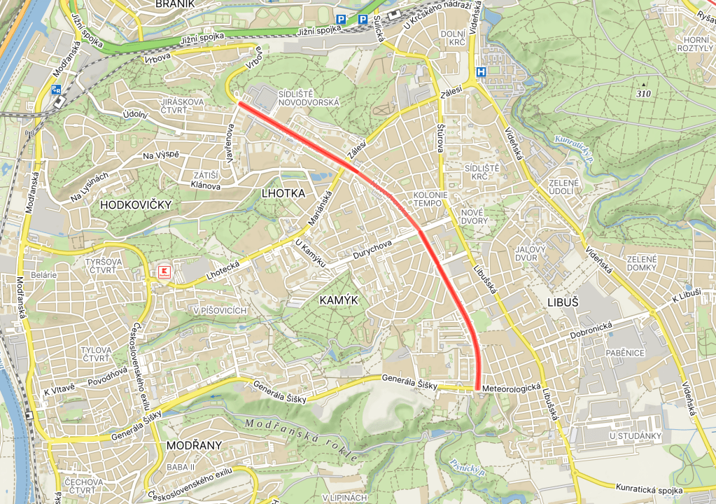 Novodvorská was created in 1935 through the merger of two streets: Hlavní (Main) and Vozová (which is related to ‘vůz’, meaning wagon).