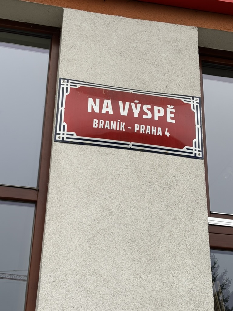 No historical novels today: a ‘výspa’ is a promontory, outpost or headland, and the street is located on one.
