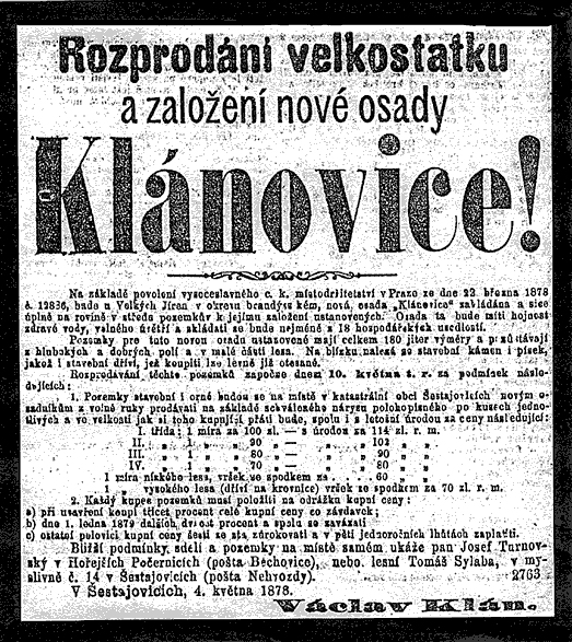 Klánovice may have thrived, but, ultimately, Klán didn’t – various investments, including a land purchase in Dalmatia, failed, and he died of a heart condition, and with very little money to his name, in České Budějovice in 1903.
