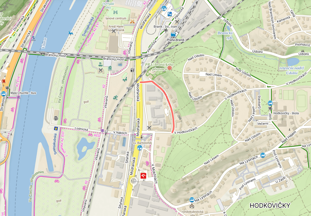 Its name translates as ‘under the hill’, and the hill in question is the one above Braník train station (as today’s post is brief, here’s a link to a little bit more about that station: https://whatsinapraguestreetname.com/2025/12/15/prague-4-day-260-pikovicka/).