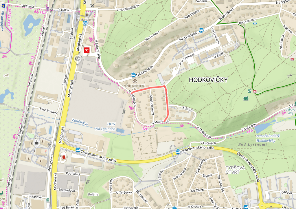 A ‘dubina’ is a forest dominated by oak trees, or ‘duby’. You could also call it an ‘oak grove’. Due to its surrounding vegetation, the area once here was once known as Na dubině.