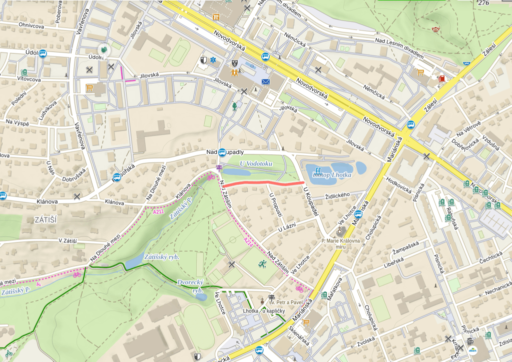 U Vodotoku (which we’d translate as something like ‘watercourse’) is a pond on the Zátišský stream, created in the 1960s at the same time as many surrounding housing estates.