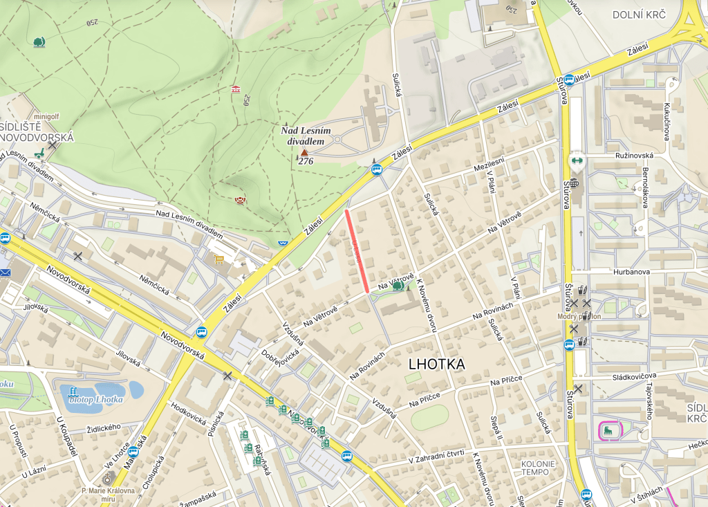 We’re back on the street names that represent the surroundings – ‘U lesa’ is quite literally by a forest, namely Velký háj, which got a bit of attention on https://whatsinapraguestreetname.com/2026/01/04/prague-4-day-270-nad-lesnim-divadlem/.