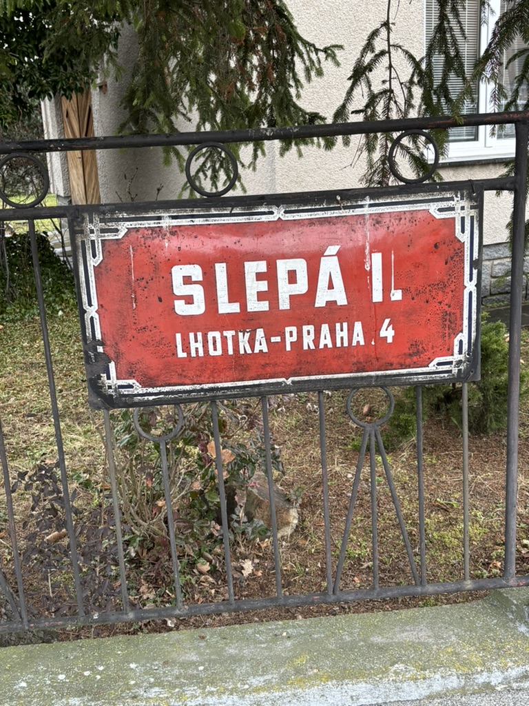 Therefore, a ‘slepá ulice’, such as this one, is a ‘blind alley’, a ‘dead end’ or a ‘cul-de-sac’ (which translates as ‘bottom of the bag’).