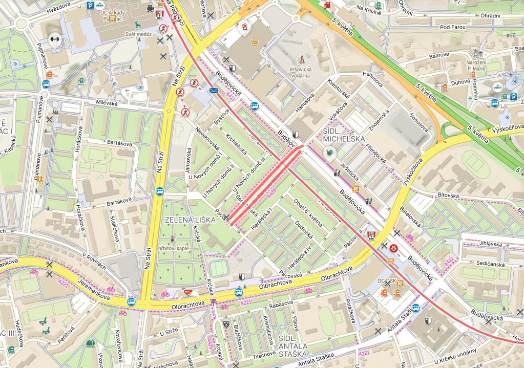 In the 1930s, a housing estate was built round here; it too was called Zelená liška – and all our recent posts have dealt with this area. It didn’t have to undergo any 9th May renaming nonsense under the Communists.