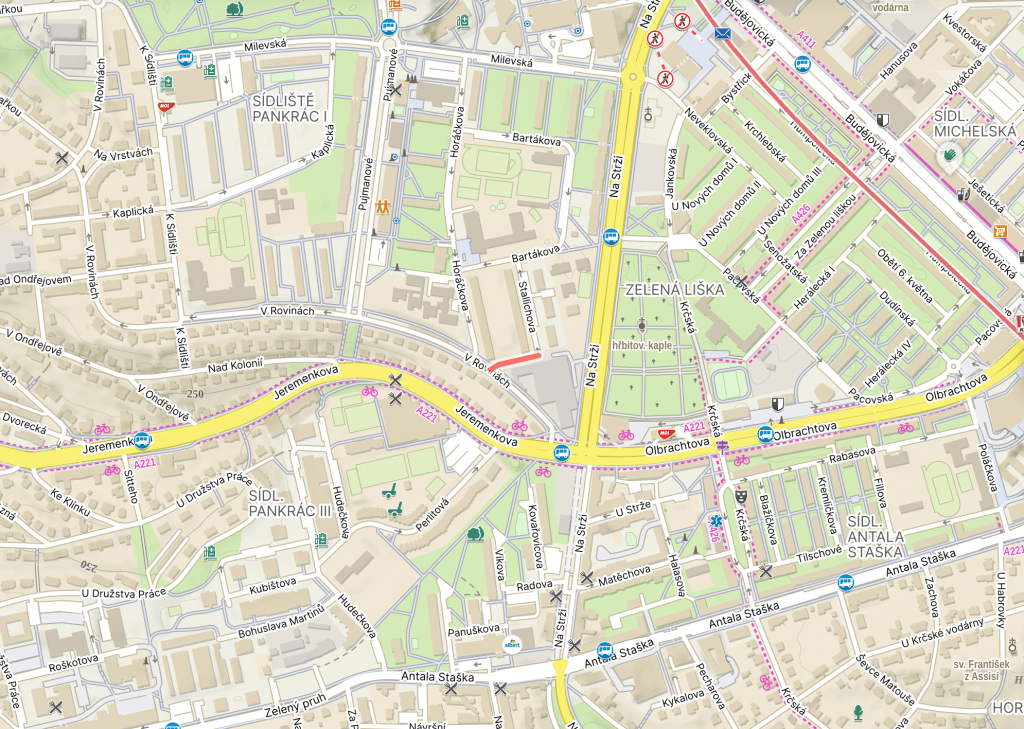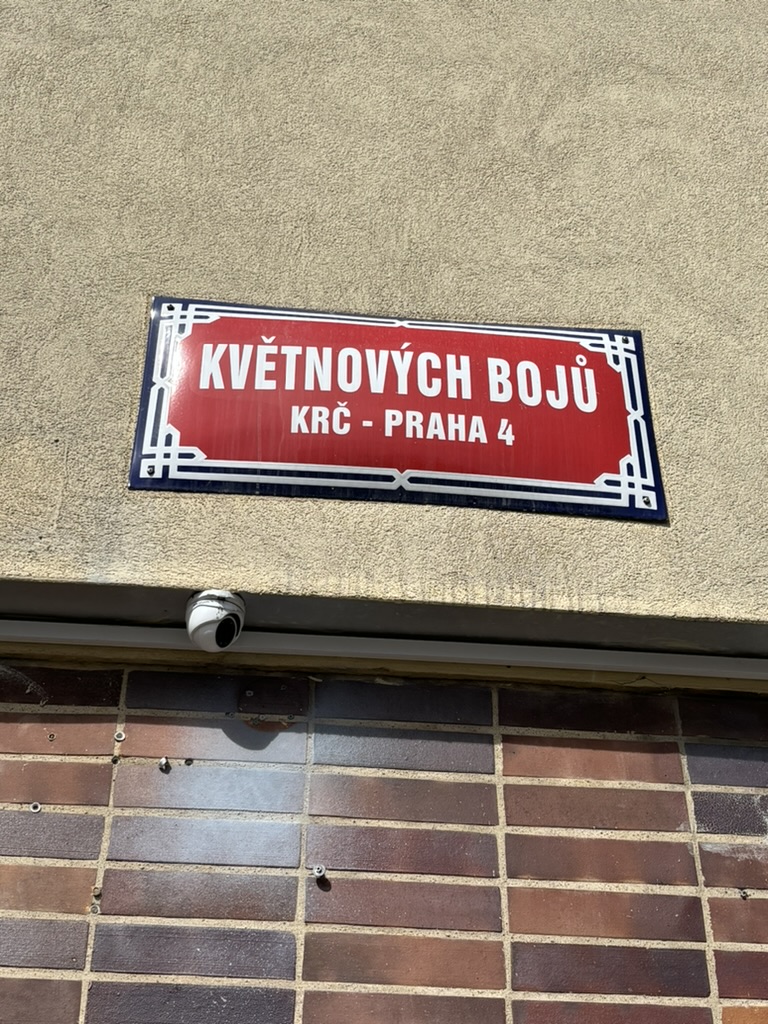 ‘Květnových bojů’ translates as (street) ‘of the May battles’, and commemorates the fact that Krč had a particularly hard time of it during the Prague Uprising of 1945.